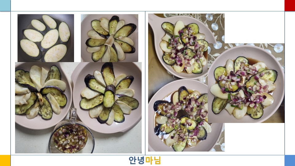 오늘은 식이섬유가 풍부한 가지와 새송이 버섯을 살짝 구워 식물성 오일인 들기름 드레싱을 곁들여 먹어 보았다. 드레싱에 다져 넣은 양파도 혈액순환에 도움을 주고 혈압을 낮춰주는 음식이라서 차가운 샐러드만 먹느라 지겨웠다면 살짝 구워 따뜻한 가지와 새송이 버섯에 달콤하고 상큼하고 향긋한 들기름 드레싱을 곁들여 먹어보자.