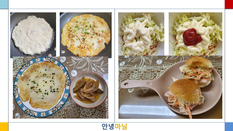 오늘은 감자전과 양파간장절임, 그리고 간단한 샐러드 샌드위치를 해보았다. 감자전은 감자와 양파를 갈아 소금 조금만 넣고 간을 했고, 미리 만들어두었던 양파간장절임을 곁들였다. 샐러드 샌드위치에는 비건 마요네즈를 사용했으며, 케찹은 본인 취향껏 넣으면 된다. 햄대신 닭가슴살을 넣어보았고, 저염치즈를 곁들였다.